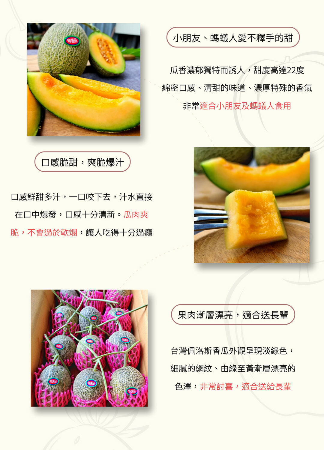 台灣產|超甜佩洛斯香瓜(卡蜜拉加強版)|爽脆多汁